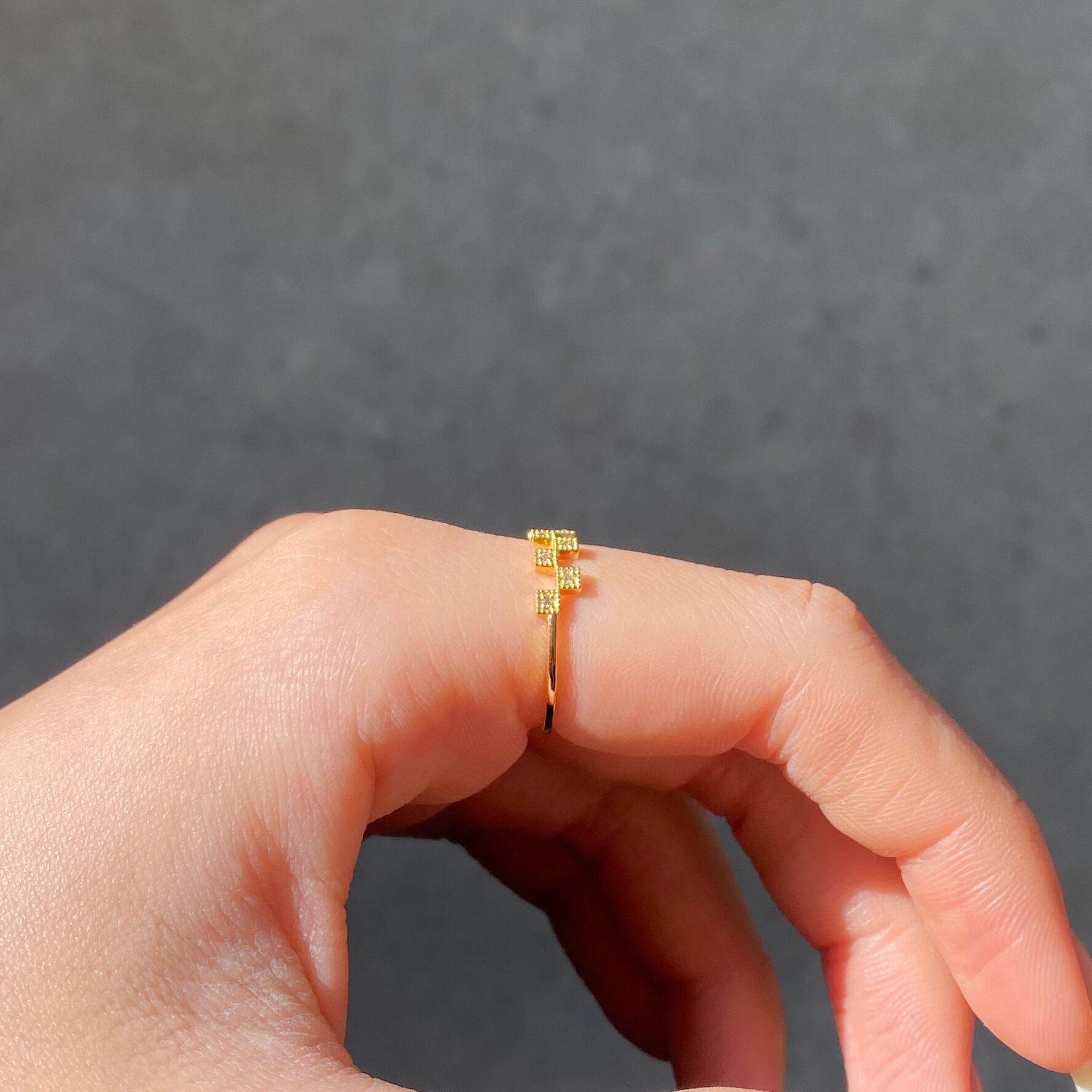 整然と並ぶスクエア模様がアクセントになったモダンなデザイン。 身に着けるだけで“抜け感”を演出してくれます。 Stone:ダイヤモンド 0.05ct Material:K18 Size:11号 Weight:約1.2g Width:最大約4.1mm 最小約0.8mm BDRID