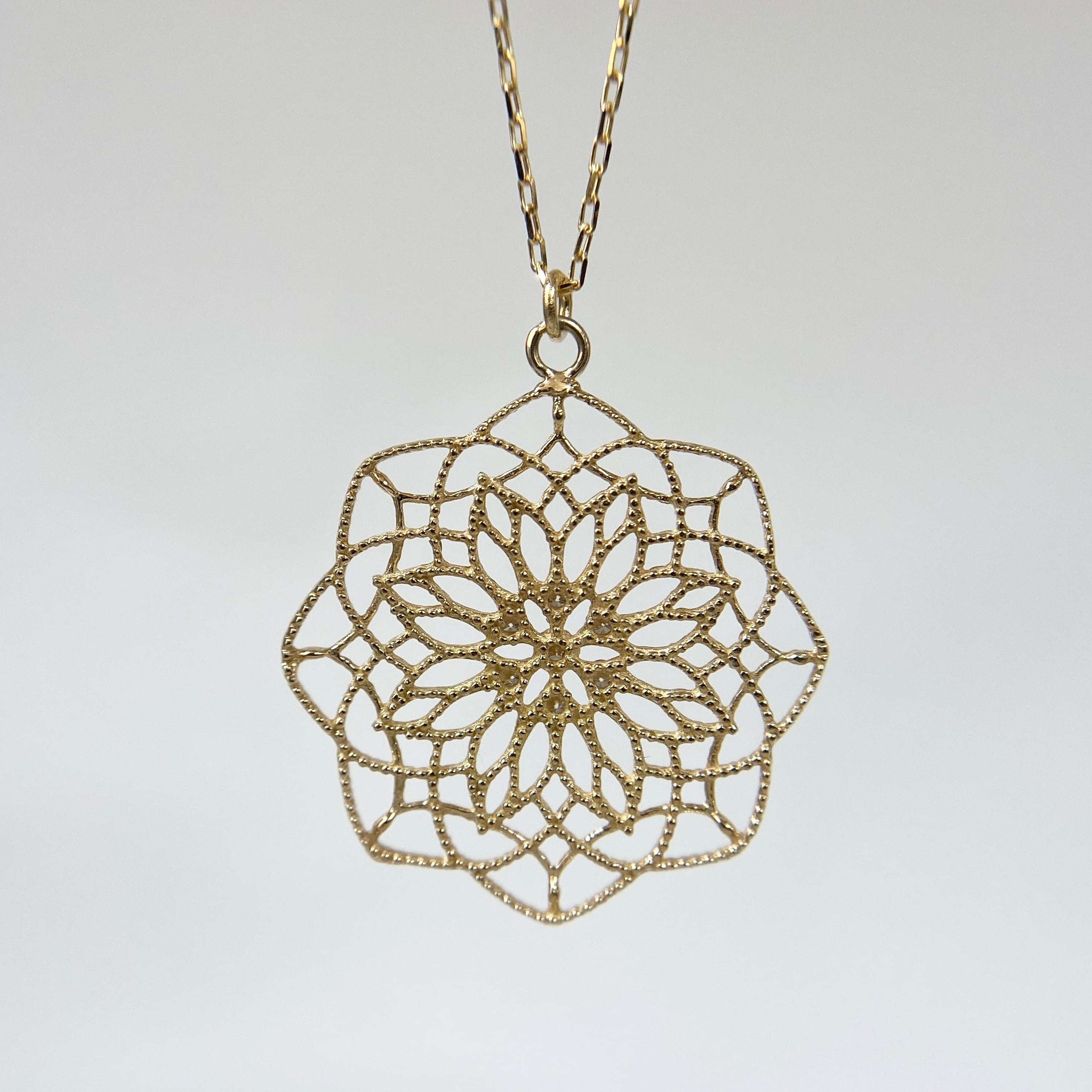 女性らしさを際立たせる繊細なデザイン。 6石の小さなダイヤモンドが上品に輝きます。 Stone:ダイヤモンド 0.035ct(刻印なし) Material:K18 Pendant Size:縦 約19.3mm 横 約17.2mm(バチカン込み) Weight:約1.5g Chain:K18 約40㎝