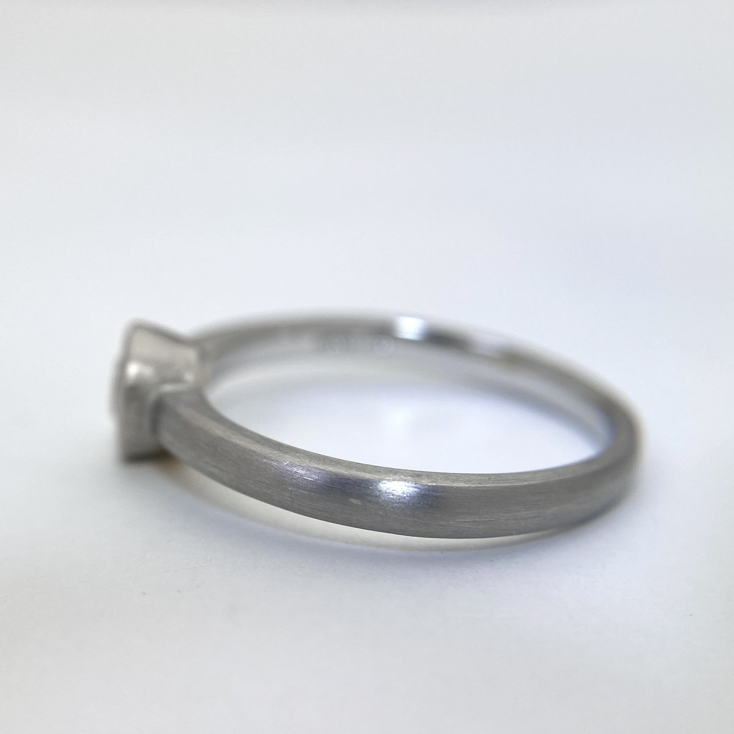 一粒のダイヤモンドと地金のシンプルな作りですが、マットな質感に仕上げることでシンプルすぎないリングになっています。