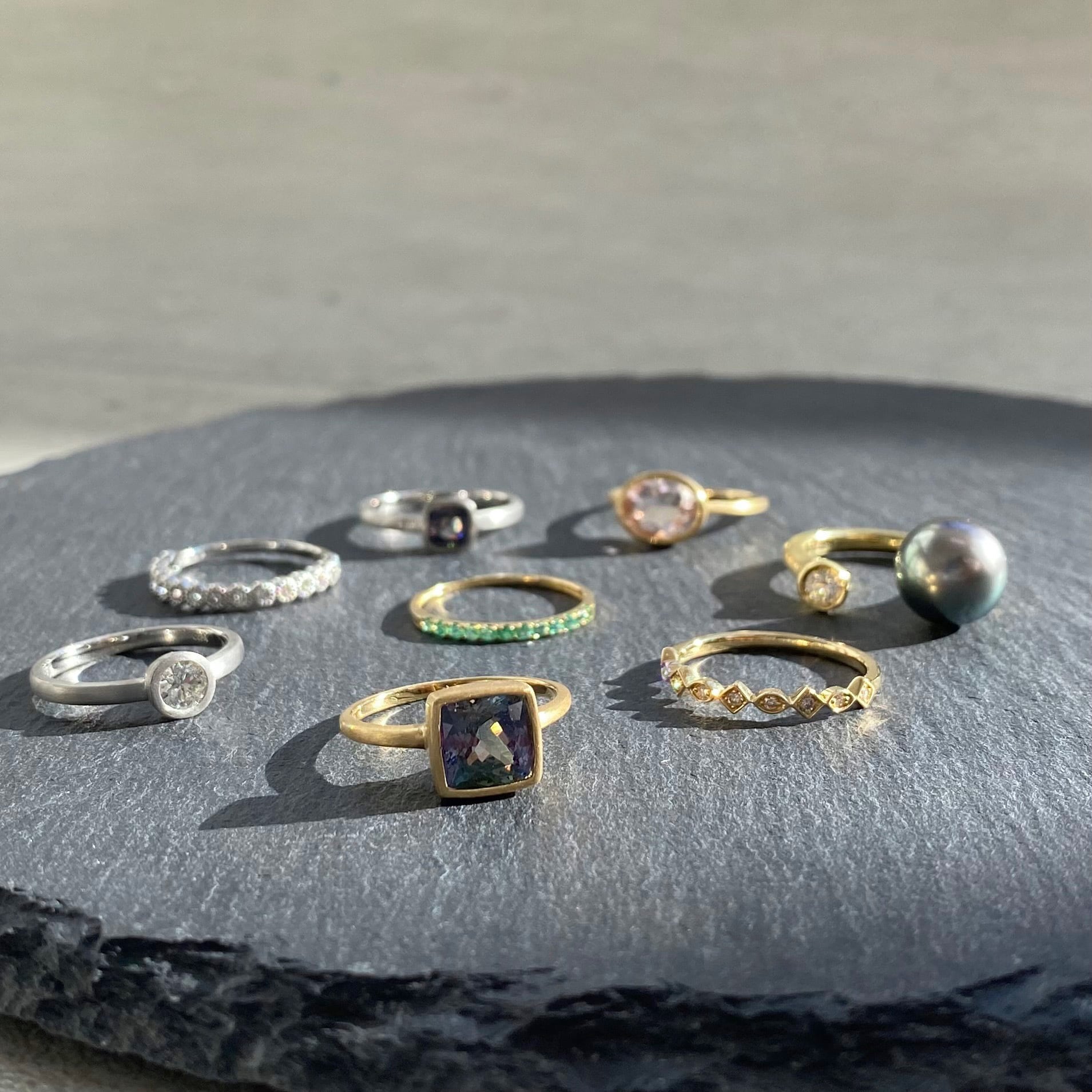 シンプルですがデザイン性のあるダイヤモンドリング。 カジュアルからフォーマルまで幅広いスタイルで身に着けていただけます。一本ではもちろん、お持ちのジュエリーと組み合わせてその日のコーディネートを楽しんでいただけます。 Stone:ダイヤモンド 0.09ct Material:K18 Size:11号 Weight:約1.5g Width:最大約2.8mm 最小約1.4mm BDRID51